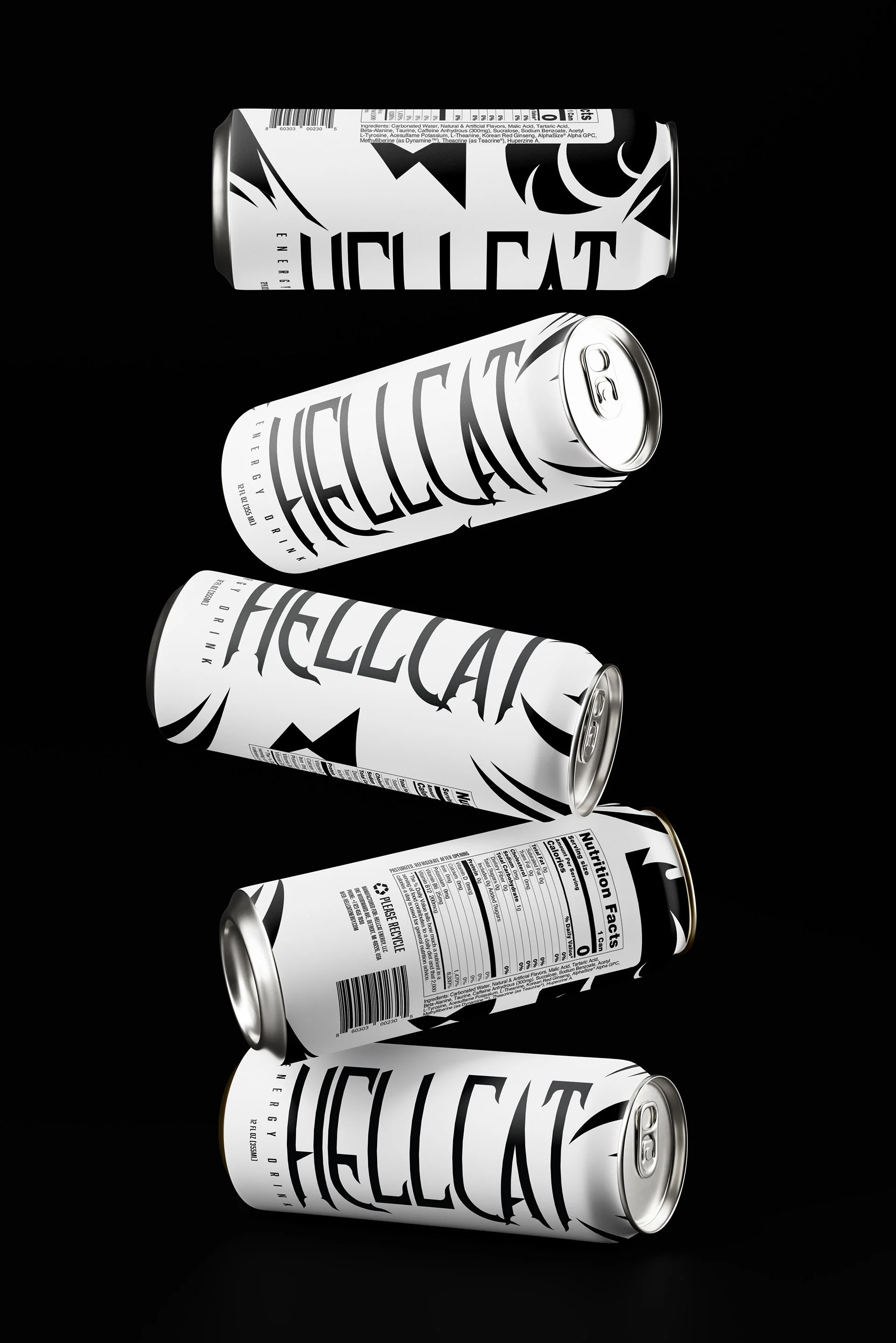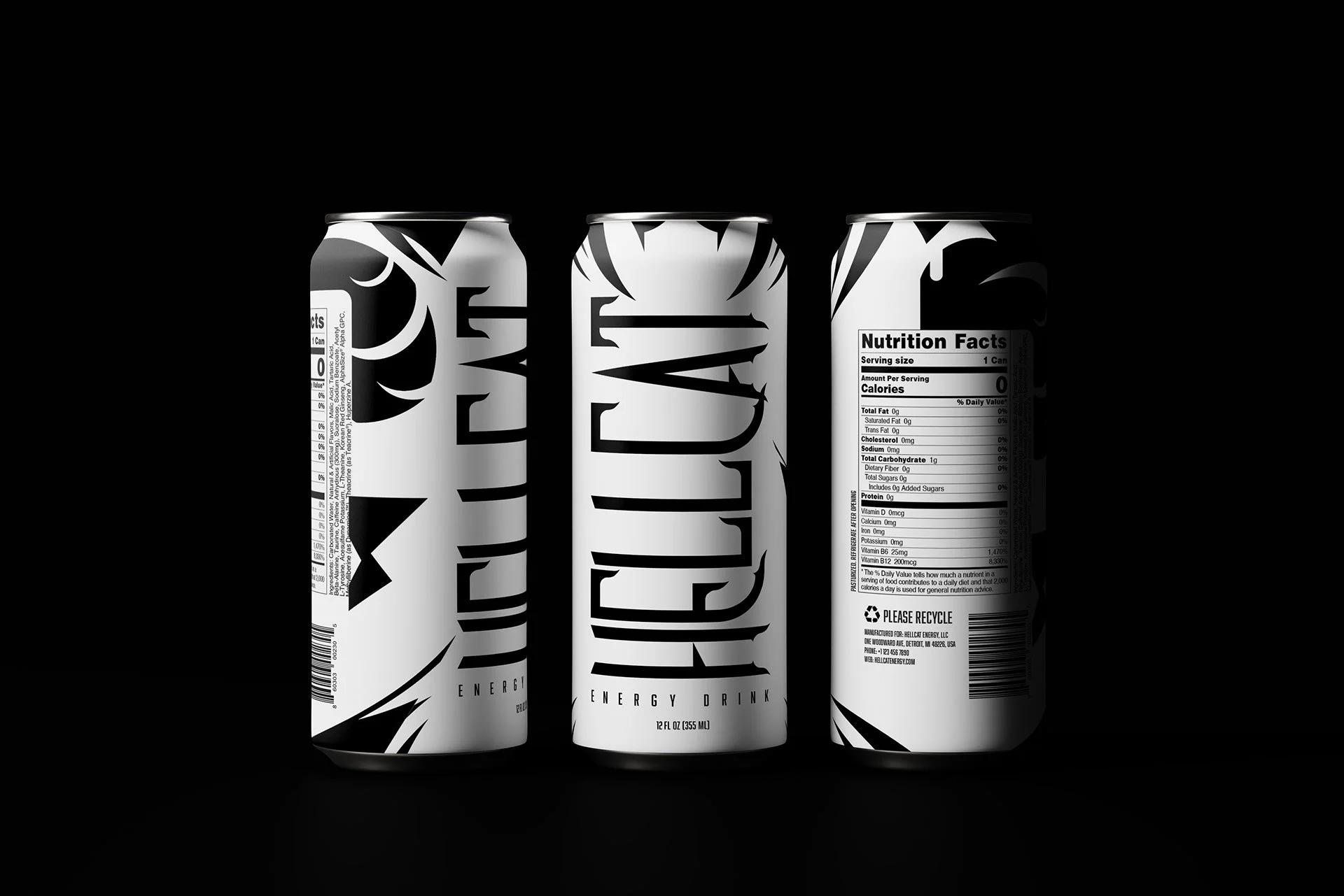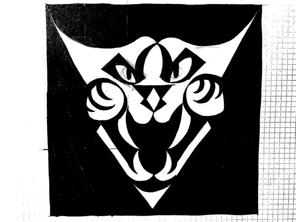 For my Foundation 1: Design Principles course, I created a graphic translation of my animal of choice using only basic shapes to create complex geometry and intense figure-ground. I captured the fierceness and ferocity of a wildcat by using sharp triangles, angular curves, and edges. I then paired this custom illustration with a striking serif typeface to create a visual identity for an energy drink brand, evoking the energy and vitality of a wild cat.